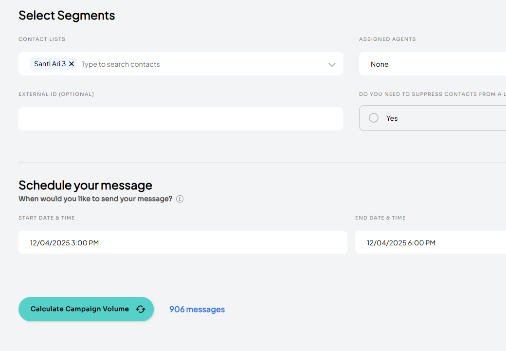 Added the ability to calculate volume on a campaign based on selected contact lists and any suppressions.