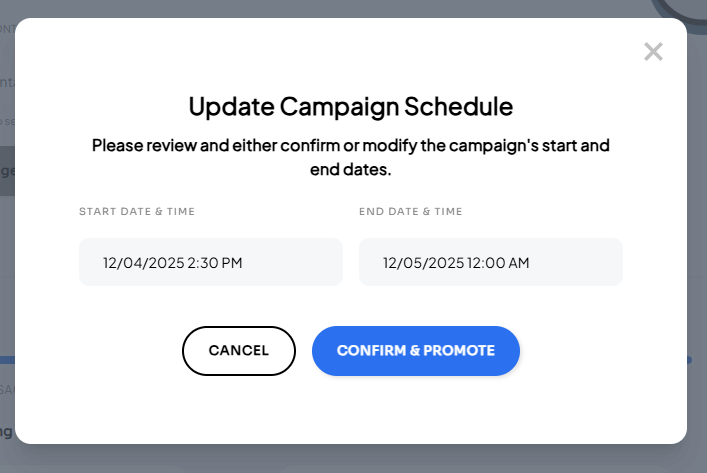 Review and confirm start and end date/time for the winning campaign.